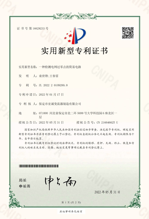 實(shí)用新型證書一種檢測(cè)電網(wǎng)過(guò)零點(diǎn)的簡(jiǎn)易電路