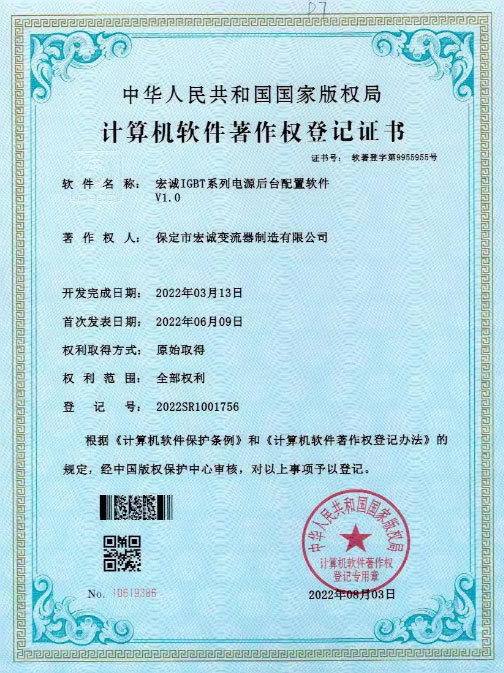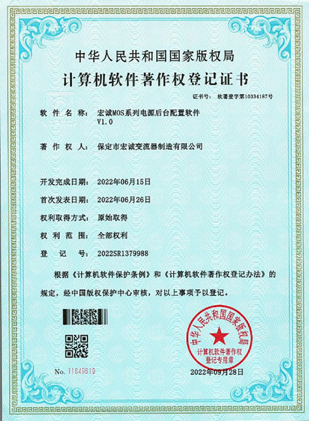 計(jì)算機(jī)軟件著作權(quán)登記證書--HC宏誠(chéng)整流器控制系統(tǒng)V1.0