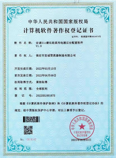 計(jì)算機(jī)軟件著作權(quán)登記證書--Sic碳化硅系列電源后臺(tái)配置軟件V1.0