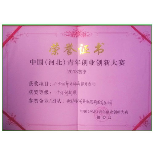 • 2013年中國(guó)(河北)青年創(chuàng)業(yè)創(chuàng)新大賽中榮獲十佳創(chuàng)新獎(jiǎng)獎(jiǎng)項(xiàng)。
